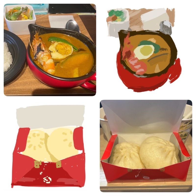 色選びの時に隣り合わせてる色を意識するとやりやすい…というツイートを見て試したくなったのでやってみた(写真は自分が過去に食べたもの) #プロクリ絵