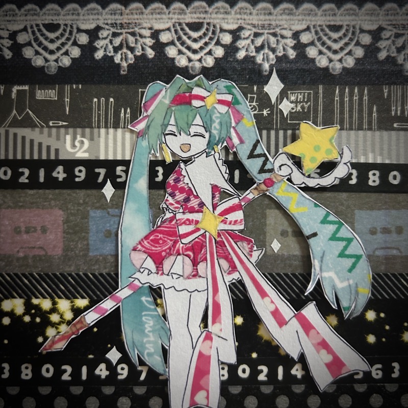 ミクさん単体だとそこまでダーク感はないけど、背景の黒とグレー系マステのおかげでいい感じにダーク感が出せて良かったです