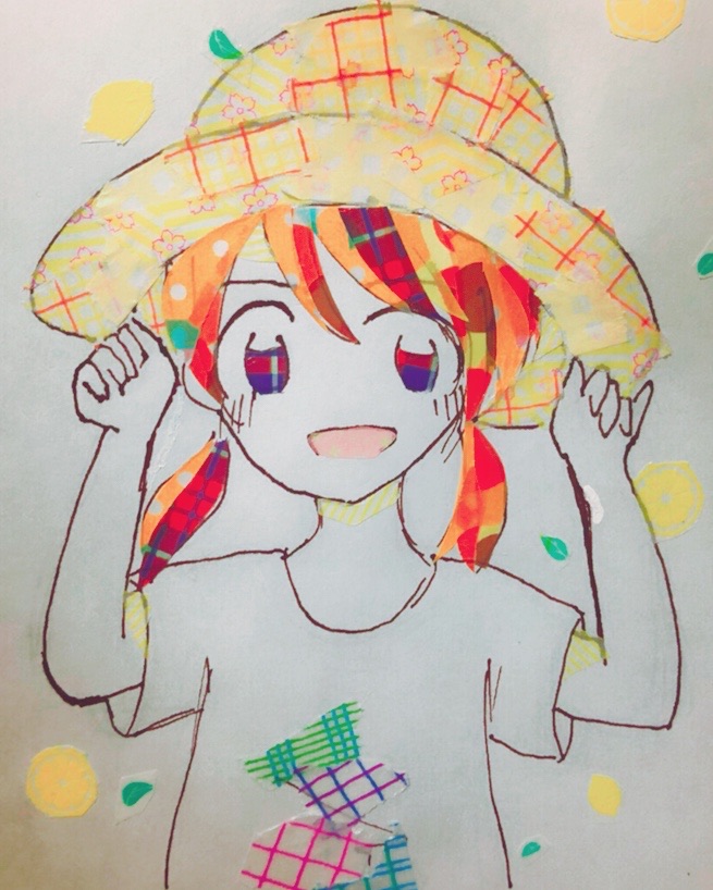 レモンのマステから夏っぽさを感じたので麦わら帽子の女の子にした気がする!🍋👒