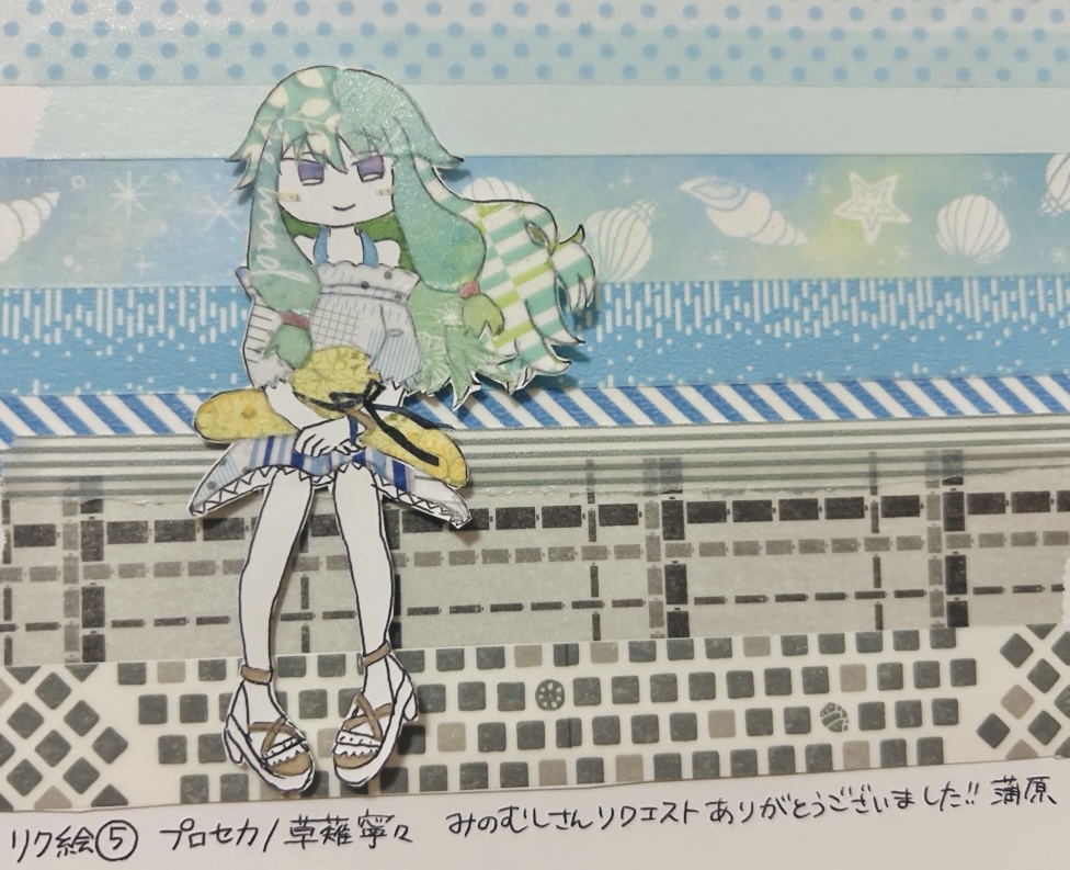 あとは寧々ちゃんの髪色に使うマステ結構悩みました…!所持している緑色マステで色的には問題ないけれどそれぞれを貼り合わせたらなんか思ってたのと違うな…?🤔になって結構吟味しました…!吟味した結果すごくいい感じに貼れたので気に入ってます!