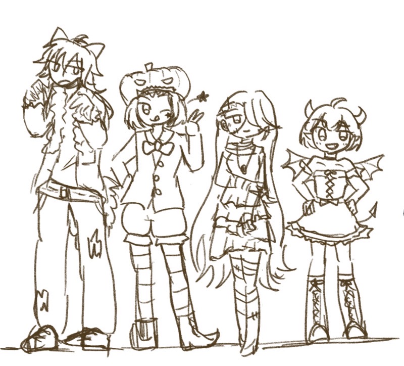 前に話してたハロウィンの自創作キャラ達 #らくがき #プロクリ絵