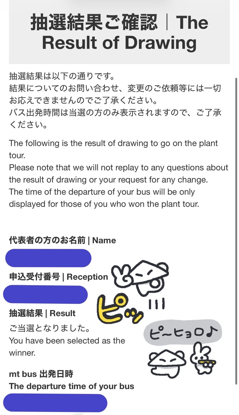 来年のmt工場見学当選してた!mtからのクリスマスプレゼントだ🎶🎄🎁