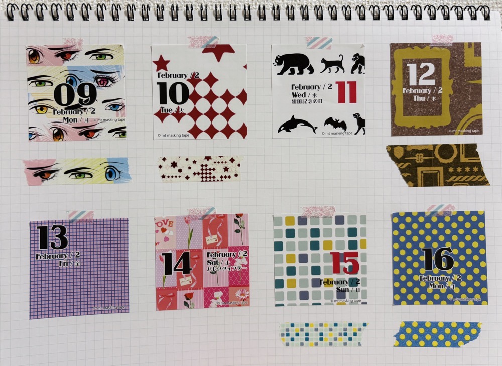 12日の飾り罫の柄のマステめちゃ好きなんだけど1/1の馬と同じくカット部分が違うせいでカレンダーで抜粋されてる箇所が見当たらなくてまたかよ!ってなりました😂逆に抜粋されてない方のマステ持ってるのがレアなのかもしれないな…(?)