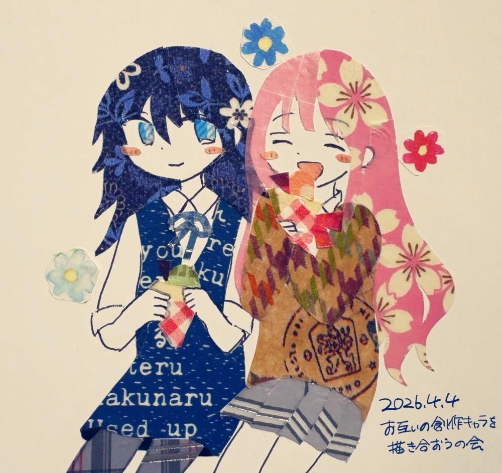 髪の線画がないだけでも結構柔らかい印象になるんだな〜と思ったりいつものマステ絵とはまた違った思考回路が必要で面白かったです