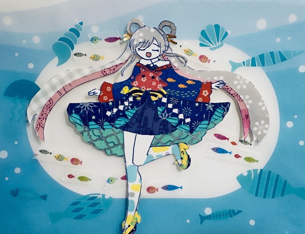 超かぐや姫!でめっちゃ美しくて印象的だったヤチヨさんのライブシーンをどうしても描きたくなったので勢いで描きました🐟🐠🐡 #マステ絵
